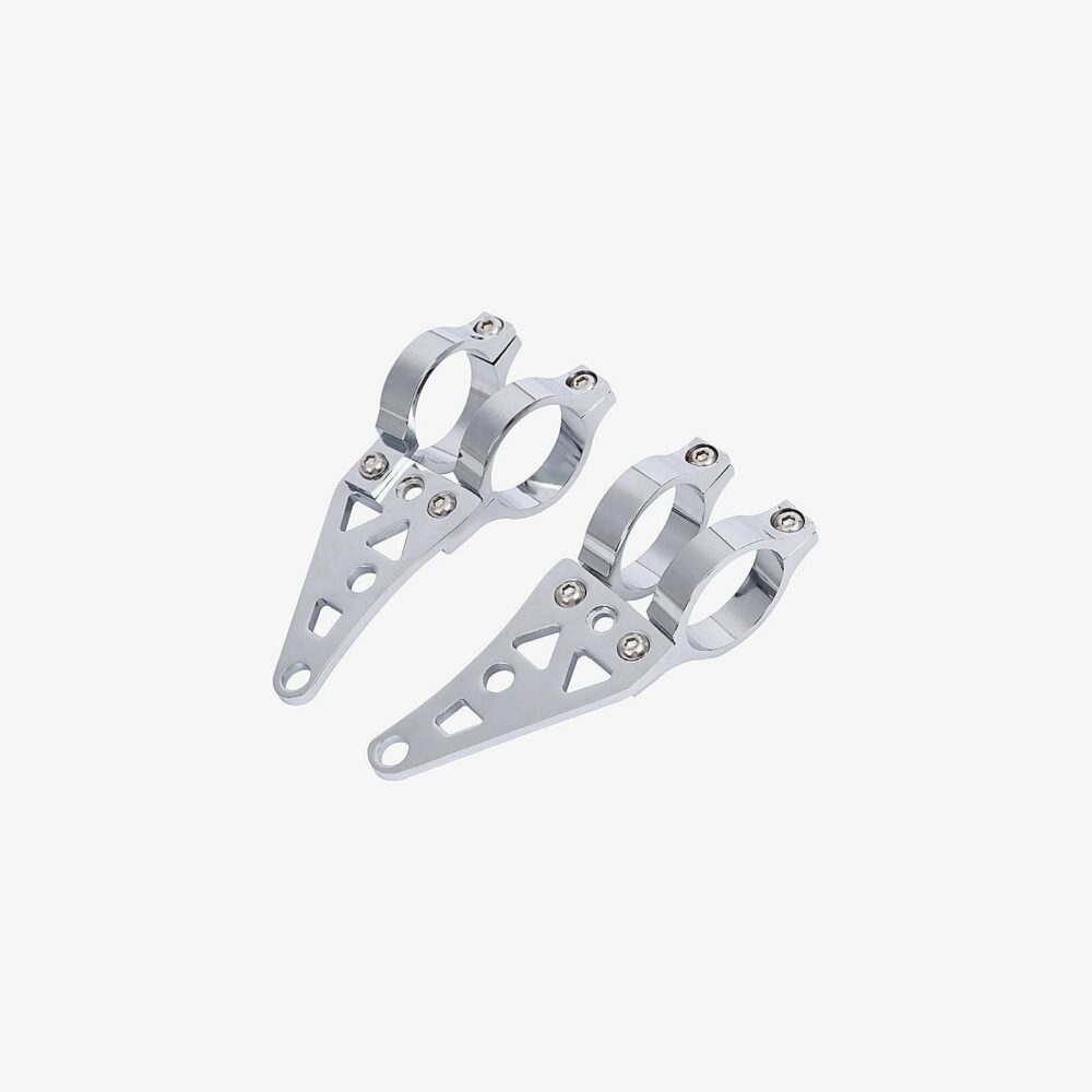 This is a universal pair of motorcycle fork headlight brackets.