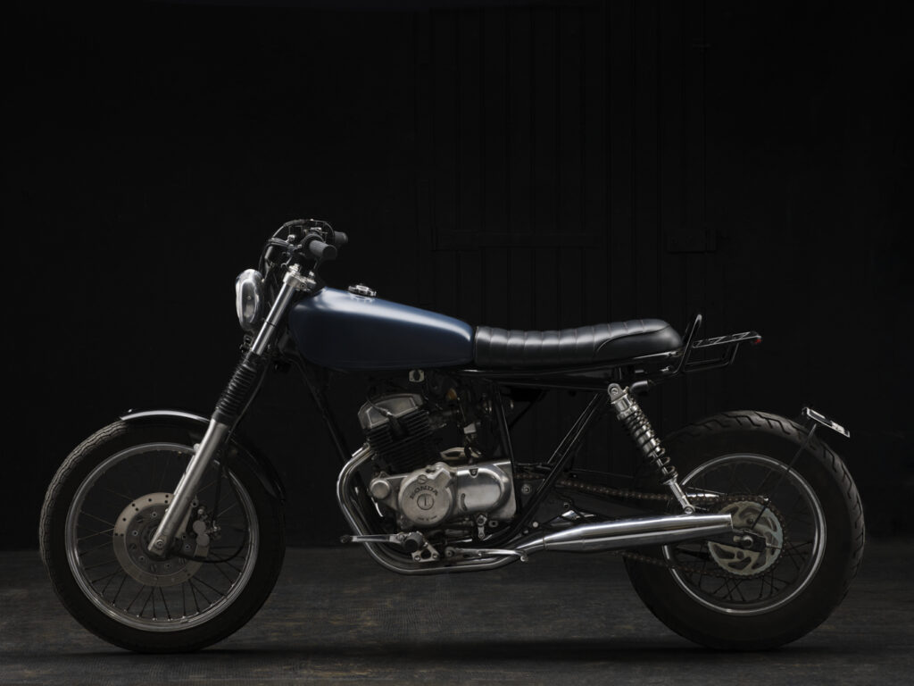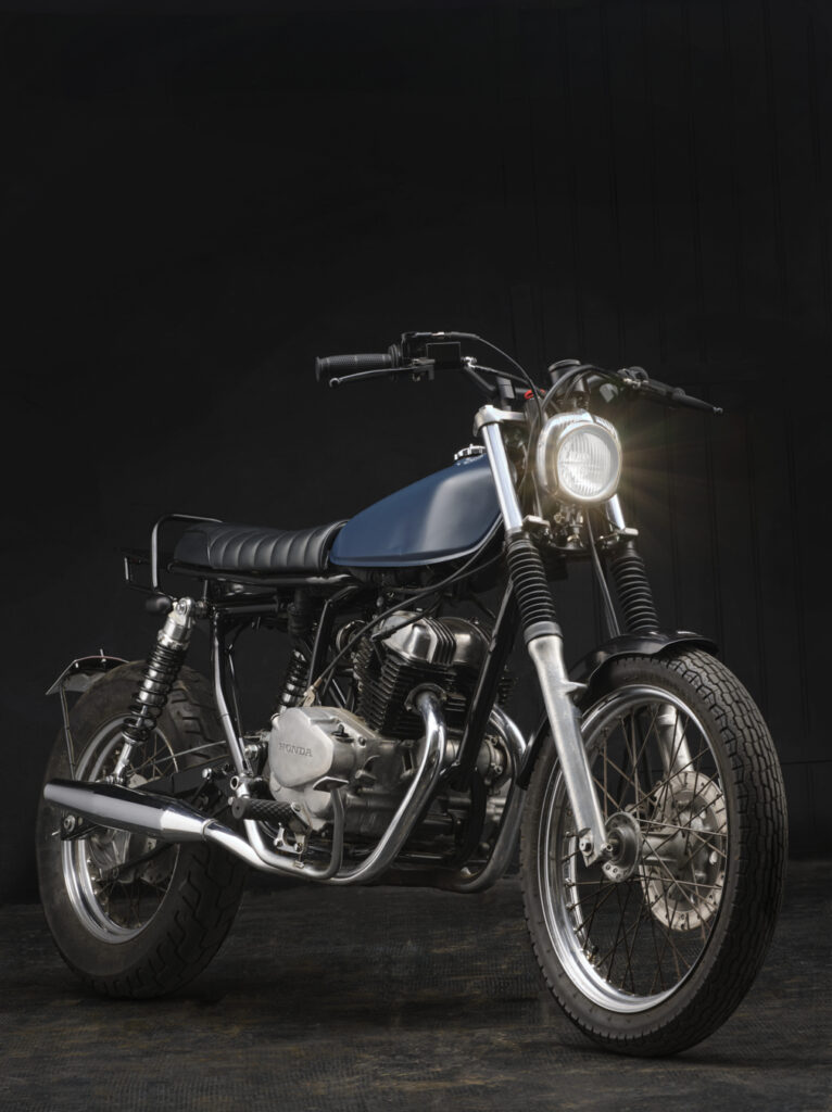 Un Travail complet sur le cadre est effectué et une peinture noire en thermolaquage est appliquée. La selle Cullen rend le montage ultra harmonieux avec le noir du cadre. Pour le poste de pilotage c’est le Guidon Stri et le combo poignées Gazzy et McDowell qui rendent la conduite très agréable.